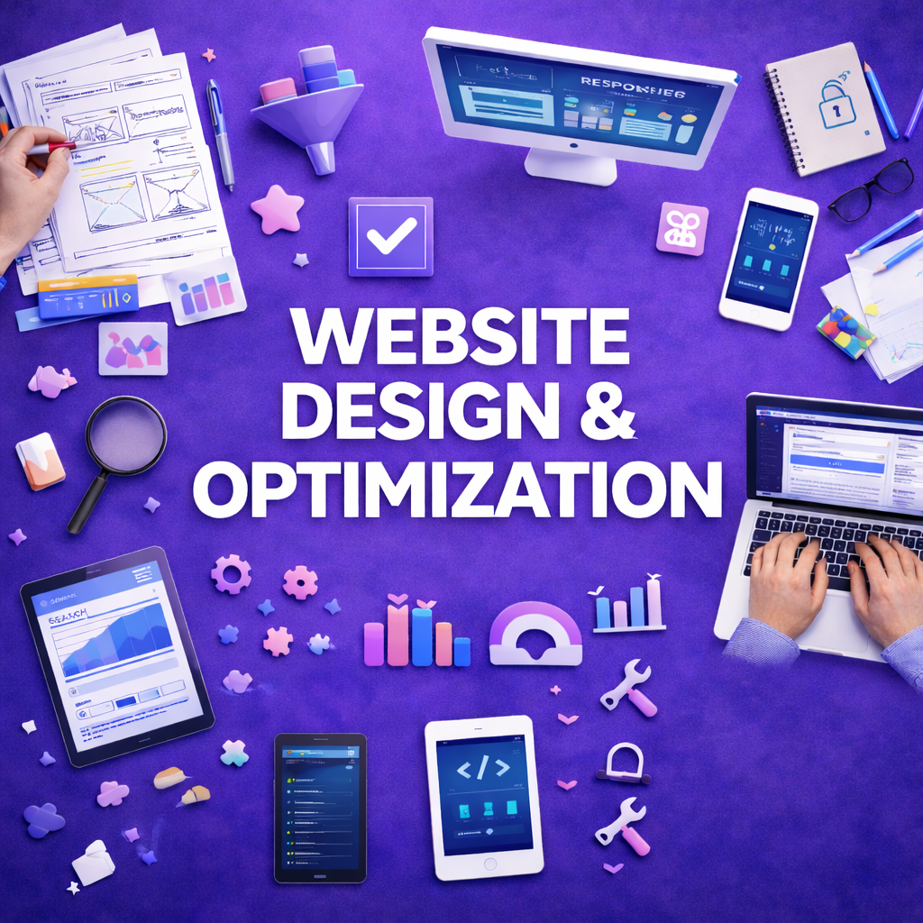 Website design and optimization create visually appealing, user-friendly websites that perform smoothly across devices. They improve speed, usability, and conversions to turn visitors into customers.